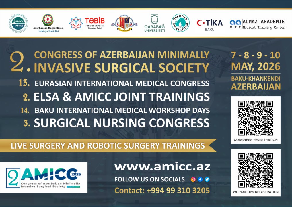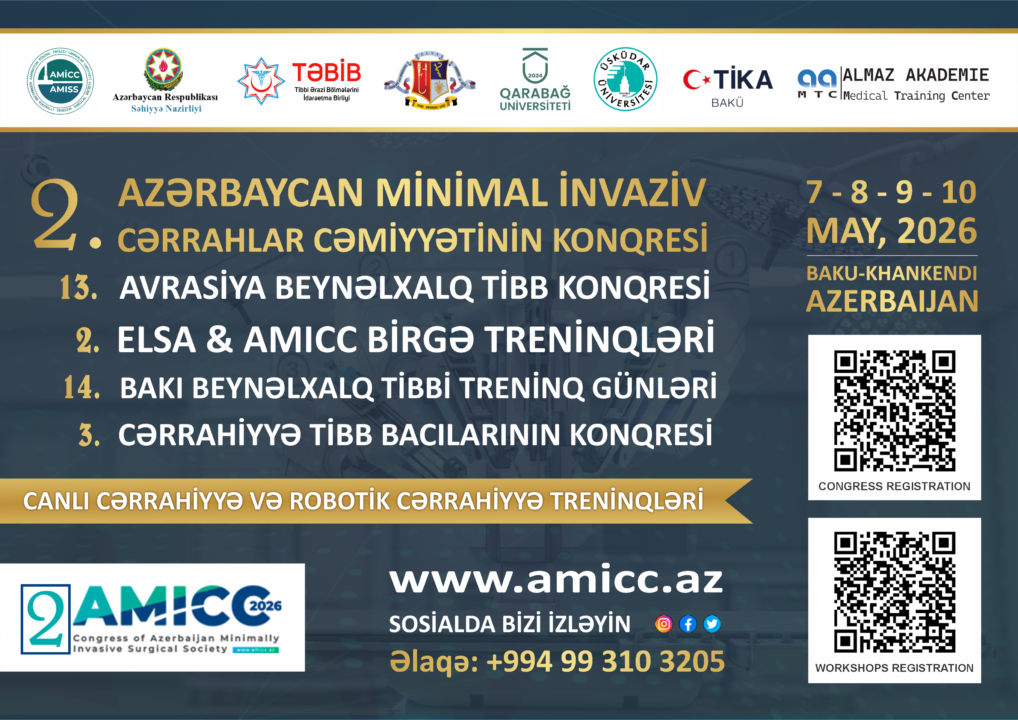 С 7 по 10 мая 2026 года в Баку пройдут II Национальный конгресс Азербайджанского общества малоинвазивных хирургов, XIII Евразийский медицинский конгресс, II Бакинская конференция Азиатского общества эндоскопических и лапароскопических хирургов (ELSA), Бакинский саммит Международного бариатрического клуба (IBC), а также III Конгресс хирургических медсестер и XIV Бакинские международные дни медицинского обучения.