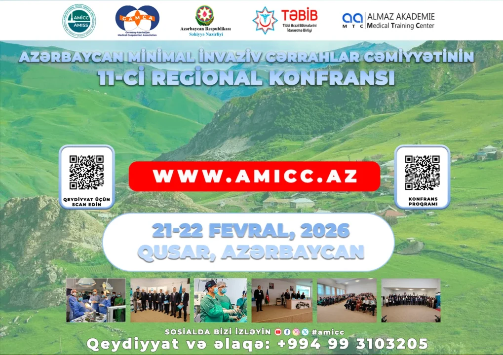 21–22 fevral 2026-cı il tarixlərində Qusar Rayon Mərkəzi Xəstəxanasında Azərbaycan Minimal İnvaziv Cərrahlar Cəmiyyətinin (AMİCC) təşkilatçılığı ilə elmi-praktik konfrans keçiriləcəkdir.